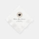 This paper napkin features a graduation hat (mortarboard) inside a tan circle with a black dotted boarder. Underneath the circle is customisable text for the graduate's name, graduation year and school name.