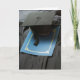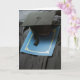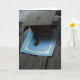 For the graduate! Card with a mortarboard, gown, and blue program.