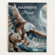 Personalised planner. Ai art depicting a brown bear and Eagle flying in front of the full moon in a mosaic style.
