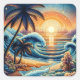 Mosaic Ai Art | Ocean Sunset and Palm Trees Square Sticker