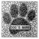 Mosaic pattern dog paw prints in black and white.