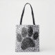 Mosaic pattern dog paw prints in black and white. Custom tote bags with all over print pattern.
