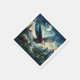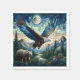 Ai art depicting a brown bear and Eagle flying in the mountains with a full moon at night in a mosaic type style.