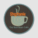 A retro looking coffee mug in teal with room for a name and business name. Copyright Night Owl's Menagerie, 2023.