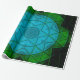 Mosaic Kaleidoscope Flower Green and Blue Wrapping Paper