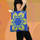 This mosaic kaleidoscope design features brilliant blue and yellow tiles. A vivid geometric design inspired by fractals, mandalas, and stained glass mosaics. Get this beautiful trippy design now for your favourite friend who loves bright colours!