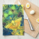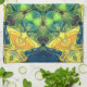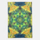 Mosaic Mandala Flower Green Yellow and Blue Tea Towel