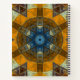 This mosaic kaleidoscope flower features brilliant yellow and blue tiles. It's vivid geometry is inspired by fractals, mandalas, and stained glass mosaics. Get this trippy design now for your favourite friend who loves bright colours!