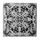 Ceramic tile in an intricate, black and white mosaic in a Moroccan tile pattern