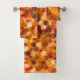 Mosaic of hexagons on spots in reddish tones throw bath towel set