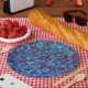 Mosaic of spattered or smoked lilac blue and green paper plate