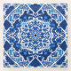 Glass Coaster in an eight pointed, mosaic, star pattern in dark indigo and cobalt blue, accented with white