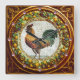 MOSAIC ROOSTER, ANTIQUE FLORAL CROWN WITH FRUITS SQUARE WALL CLOCK