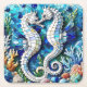 Mosaic Seahorses Romantic Beachy Square Paper Coaster