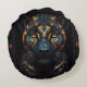 Mosaic Stained Glassed Black Panther Portrait Round Cushion
