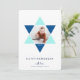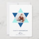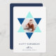 Elegant and modern Hanukkah photo card features a favourite photo set inside a Star of David accented with bright shades of blue for a unique mosaic effect, on a white background. "Happy Hanukkah" appears beneath in modern, clean white lettering. Personalise with your names along the bottom.