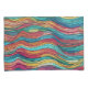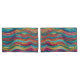 This abstract design merges the fluidity of ocean waves with the intricate beauty of mosaic art. It showcases a mesmerising array of colourful, tessellated waves that ebb and flow. Each wave is composed of small, geometric shapes, creating a unique texture that invites closer inspection. The vibrant colour palette spans from cool aquas and deep blues to warm reds, oranges, and yellows, with splashes of pink and purple adding depth and contrast.
