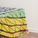 This abstract design merges the fluidity of ocean waves with the intricate beauty of mosaic art. It showcases a mesmerising array of colourful, tessellated waves that ebb and flow. Each wave is composed of small, geometric shapes, creating a unique texture that invites closer inspection. The vibrant colour palette spans from cool aquas and deep blues to warm reds, oranges, and yellows, with splashes of pink and purple adding depth and contrast.