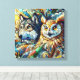 Ai art depicted a wolf and owl in a tile mosaic style. Blue eyes wolf and serious owl wall art. Great for anyone who loves wildlife.