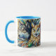 Ai art depicted a wolf and owl in a tile mosaic style. Blue eyes wolf and serious owl coffee mug. Great for anyone who loves wildlife.