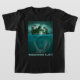 Mosasaurus Alert! This dramatic image is a Mosasaurus silently gliding through the ocean, looking for his next meal. The Mosasurus is a real Dinosaur that was made famous in the Jurassic World movie. He spots his prey and is getting ready to jump out of the ocean to eat some other Dinosaurs on an island, including a T-Rex and a Velociraptor. This shirt is available in various sizes, colours and styles. You choose! This image looks very good on dark shirts! This sample is shown printed on the front of the shirt.