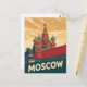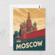 This stylish card features a vintage-style illustration of the iconic St. Basil's Cathedral in Moscow, Russia. The design captures the unique, colourful domes and classic fortress walls with a distressed, retro texture. The muted colour palette and bold, distressed "MOSCOW" typography give it the feel of a classic travel poster. It's the perfect memento or greeting for any lover of travel, history, or unique architecture.
