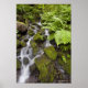 Moss covered rocks with blurred water and ferns poster