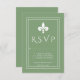 Elegant and simple Wedding Response Card featuring a fleur de lis against a moss green background. This trendy design is a unique choice for a modern wedding. Easy to customise with your wedding details. Click "Customise It" to find more personalisation options.