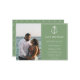This Nautical Monogram Photo Save the Date Announcement comes with a simple text design, a simple nautical anchor for the bride and groom monograms in a modern outlined box waiting for your photo and your wedding details to customise. Additional colours available with this design. Perfect for couples who will be having a nautical theme wedding.