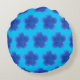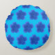 Seamless pattern of Moss Rose flower printed on light blue round throw pillow. Floral design pillow for lovers of flowers and to add the beauty of nature on your chair, couch, sofa, in your bedroom or living room. You can also give it as a gift.