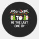 Most Likely To Be Last One Up Funny Christmas Fami Classic Round Sticker