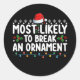 Most Likely To Break An Ornament Christmas Holiday Classic Round Sticker