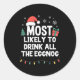Most Likely To Drink All The Eggnog Christmas Funn Classic Round Sticker