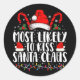 Most Likely To Kiss Santa Claus Christmas Family Classic Round Sticker