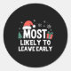 Most Likely To Leave Early Christmas Funny Xmas Classic Round Sticker