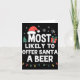 Most Likely To Offer Santa A Beer Christmas Funny Card