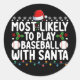 Most Likely To Play Baseball With Santa Christmas Classic Round Sticker