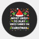 Most Likely To Play Video Game On Pjs Christmas Xm Classic Round Sticker