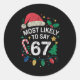 Most Likely To Say 67 Six Seven Funny 67 Christmas Classic Round Sticker