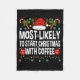 Most Likely To Start Christmas With Coffee Family Fleece Blanket
