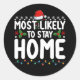 Most Likely To Stay Home Christmas Family Holiday Classic Round Sticker
