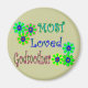 Godmother t-shirts, mugs, key chains, cards, buttons, tote bags....green and blue retro flower design...