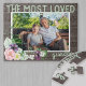Charming photo puzzle for your grandfather - great for father's day or a birthday gift. The template is set up ready for you to add your own photo and you can also edit "grandpa" to your preferred title (ie., nonno, papa etc), if you wish. This watercolor floral design features a rustic dark wood look background with flowers and wild roses in pink, peach and cassis purple. The wording reads "the most loved [grandpa]" in attractive vintage lettering and script typography. Please browse our store for matching items or alternative designs.