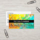 Truly unique Plumber business cards designed with a splash of colourful water background and your business name featured right on the front of this two side custom plumbing service business profile card template.