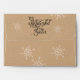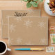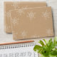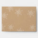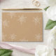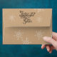 Simple and minimal Christmas envelopes with our Most Wonderful Time black typography text on a background that looks like tan kraft paper with soft snowflakes.