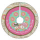 Most Wonderful Time of the Year holiday tree skirt features a beautiful design with a background of white typography, a ring of pink edged with brown, and a ring of aqua with white polka dots! This pretty holiday tree skirt also features circles with stars of cream on pink, a snowman couple, and text that reads It's The Most Wonderful Time of the Year! This beautiful Christmas tree skirt will be treasured for years to come!