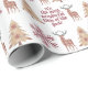 This pretty Holiday wrapping paper is covered with images of maroon snowflakes, Christmas trees, and woodland pattern deer. Along with the images is matching maroon text that says "It's the most wonderful time of the year". Everything is placed on a white background. Be sure to see the matching gift tags, ribbon, and bags in our store.