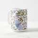 This ceramic mug features a hand drawn design of a delicate moth and floral designs in a beautiful corn blue and olive green shades.