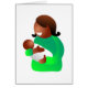 Cute illustration of an ethnic woman cradling her newborn baby in her arms. Image available on various gifts and products.