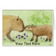 A tiny painting of a Capybara mother with her baby nuzzling noses.
